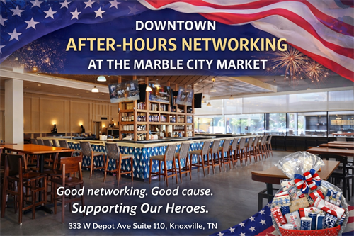 Good networking. Good cause. We’ll also be supporting our local heroes with a raffle basket where proceeds will be donated to The Ben Atchley State Veterans Home, and veterans will receive specials at The Marble City Market Bar.