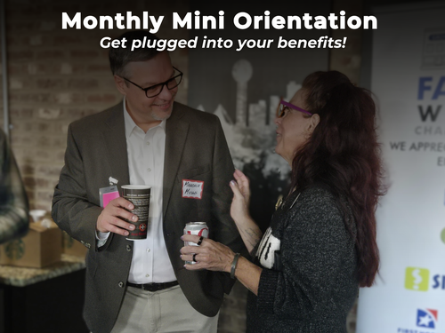 Join us on the FIRST Friday of each month for "Monthly Minis: New Member Orientation," a limited space SMALL group networking and orientation opportunity!